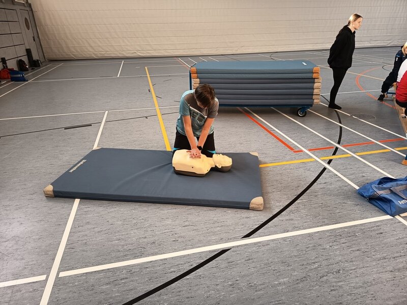 Für den Bereich Fitness- und Gesundheitssport konnten wir Tristan Bechmann als Referenten gewinnen. Er begann den Tag mit Warm-Up-Spielen bevor er andhand eines mitgebrachten Skeletts die Wirbelsäule erklärte und im Anschluss daran Übungen für ein Tiefenstabilisationstraining dieser mit Handgeräten aufzeigte. Den Nachmittag verbrachten die Anwesenden mit Faszientraining. Hierfür benutzte Tristan Hanteln und Brasils.
